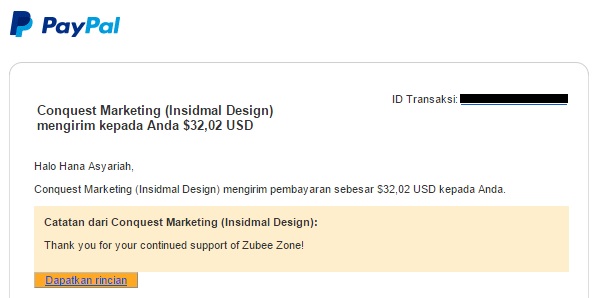 Tgl 6 : +65,00 USD ZubeeZone (Bukti)Tgl 11 : -5,00 USD OrbitalTraffic (Upgrade)